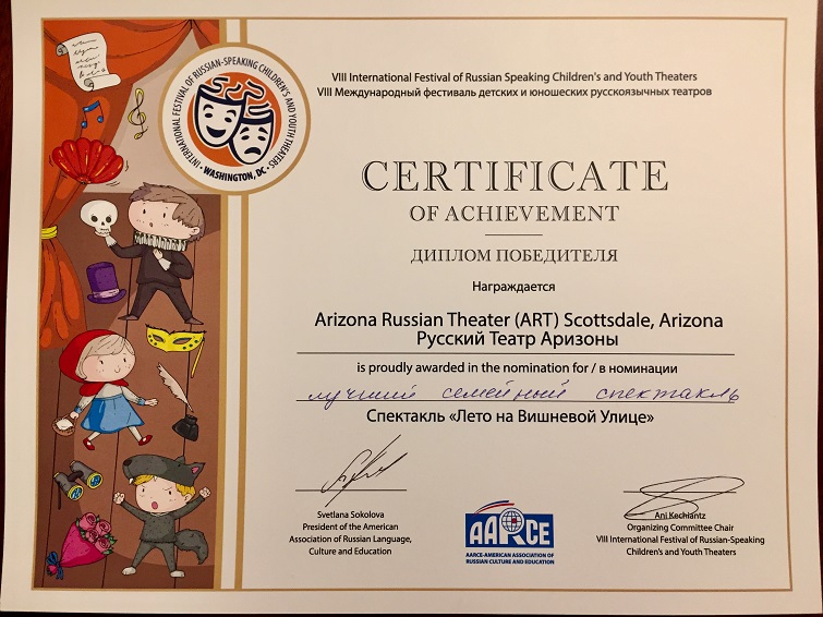 Премия «Лучший семейный спектакль» на VIII международном фестивале молодежных русскоязычных театров